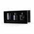 Glass Diffuser and Candle Gift Box gathers elegant fragrance pieces within a sophisticated matte black presentation case. Inside the set sits a 50ml round reed diffuser alongside a matching 50ml square reed diffuser. Both glass diffusers contain sandalwood fragrance that disperses gradually through black reed sticks. The woody aroma creates a warm and inviting atmosphere within living areas, offices, or reception spaces. A 50g vanilla scented candle completes the trio, releasing a soft creamy scent once illuminated. The tinted glass containers introduce subtle decorative depth while maintaining a refined appearance. Presented inside a structured matte black box, the collection delivers a polished fragrance arrangement suited to memorable gifting and elegant interior presentation.